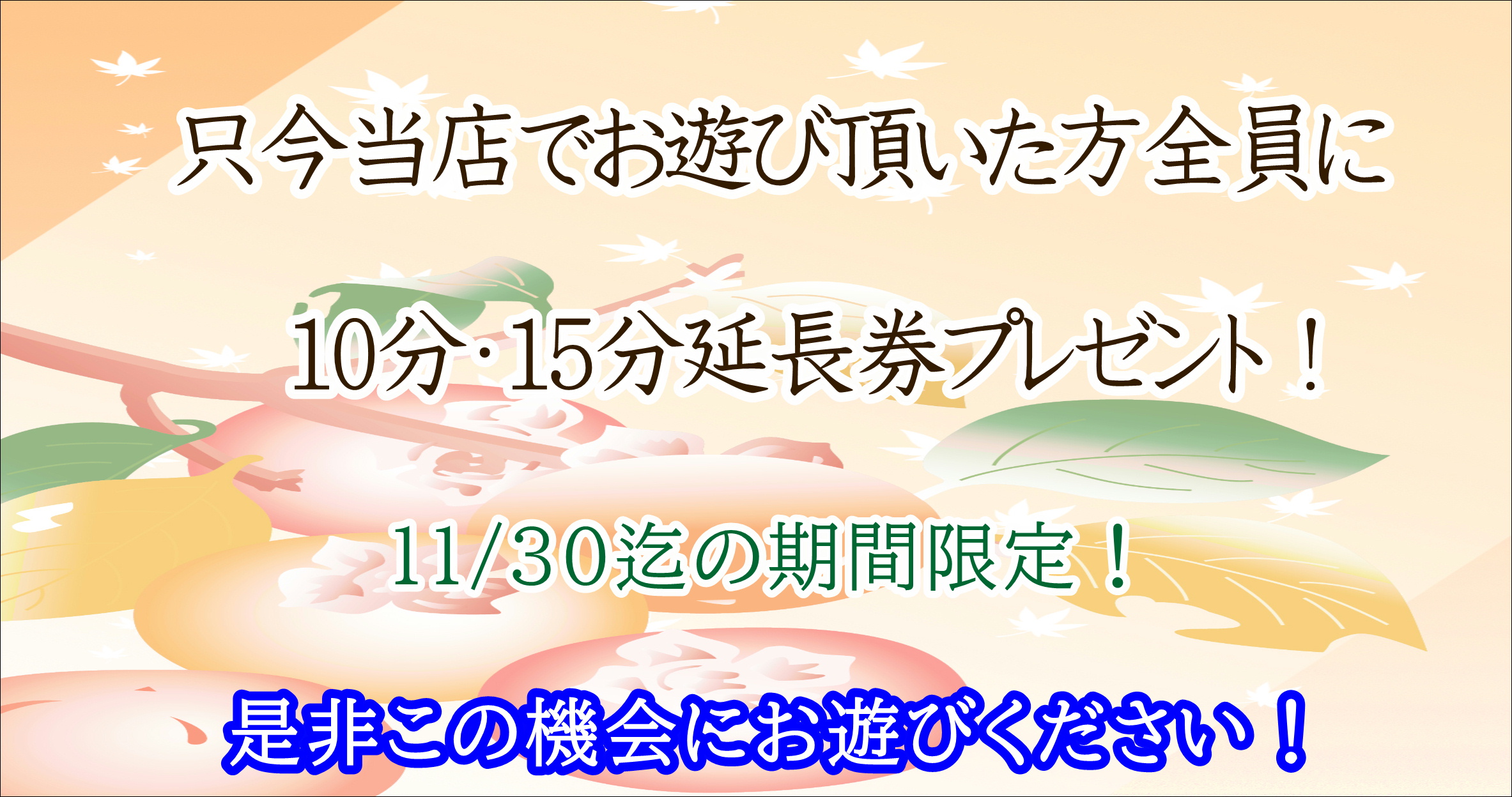 大好評!!【10分or15分】延長チケットお配りしております!!